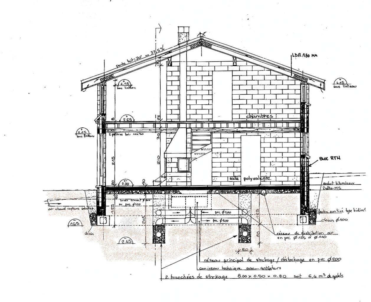 Il est principalement animé par Herakles, un architecte spécialisé dans l’habitat bio-climatique et qui étudie ce système depuis les années 70. En plus d’être compétent, il est disponible et aimable. C’est à lui que nous devons les plans d’architecte et les dessins qui illustrent cet article.